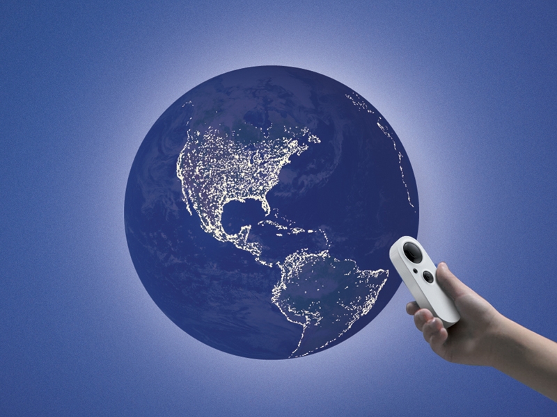 דגם כדור הארץ מופעל באמצעות שלט רחוק, ומציג באופן מרתק את מופעיו